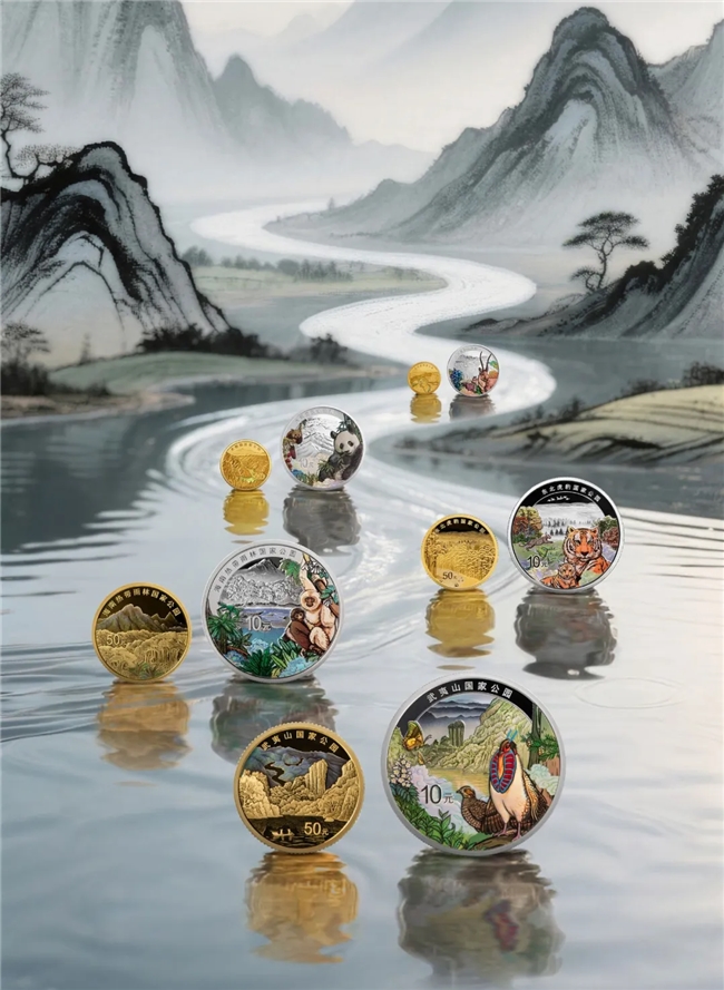 国家公园是指由国家批准设立,以保护具有国家代表性的自然生态系统为主要目的,让资源科学保护和合理利用的特定陆域或海域。国家公园由国家确立并主导管理,是我国生态文明制度建设的重要内容,是我国自然生态系统中最重要、自然景观最独特、自然遗产最精华、生物多样性最富集的部分。2021年10月12日,习近平总书记向世界宣布中国正式设立三江源、大熊猫、东北虎豹、海南热带雨林、武夷山等第一批国家公园。国家公园系列贵金属纪念币全面纪念和展示了首批5个国家公园的独特景观及重要物种。